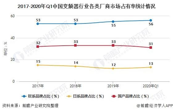 在國內(nèi)變頻器市場中,以西門子為代表的歐系品牌在技術(shù)和品牌認(rèn)可度上明顯超越日系和國產(chǎn),目前歐系品牌變頻器仍然占據(jù)主要地位,2020年一季度歐系品牌占比達(dá)56%,日系和國產(chǎn)則分別占比13%、31%,國產(chǎn)品牌主要集中在OEM市場,在產(chǎn)品技術(shù)實(shí)力和品牌認(rèn)可度上仍有較大的提升空間。