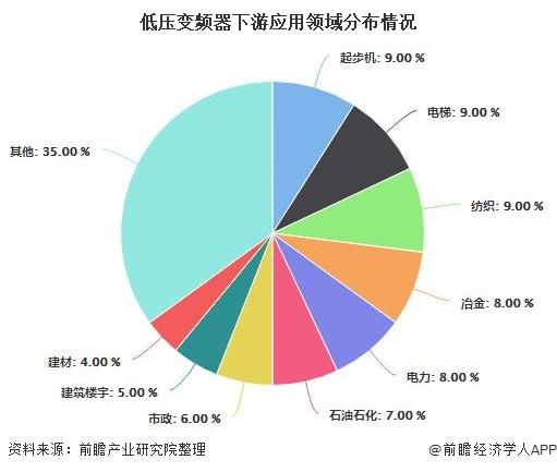 變頻器市場通常細(xì)分為高壓和中低壓兩個部分,中低壓變頻器是其中最重要的細(xì)分市場。低壓變頻器調(diào)速范圍廣、操作簡單,能夠?qū)崿F(xiàn)工藝調(diào)節(jié)、節(jié)能、軟啟動、改善效率等功能,低壓變頻器下游較為分散,在電梯、紡織機(jī)械、起重機(jī)械、電力、冶金等領(lǐng)域均有應(yīng)用。